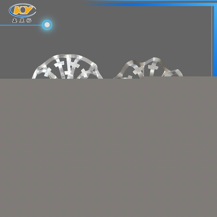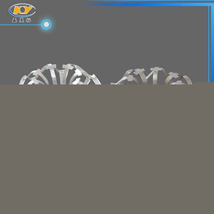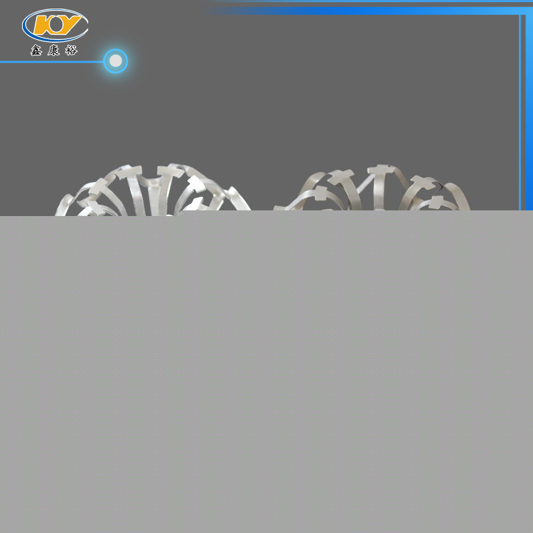 鋁花環(huán)填料主要材質為鋁合金,產品采用鋁合金板沖壓制成,外觀為橢球狀填料,包括有由一塊板材一體成型內環(huán)和外環(huán),該內環(huán)與外環(huán)之間連接有筋,所有筋是由上半圓環(huán)筋和下半圓環(huán)筋構成,每兩相鄰筋由上半圓環(huán)筋和下半圓環(huán)筋交錯排列。這樣具有比表面積大,單位重量輕。產品除具有一般的通量大、不易被堵塞、通量大、阻力小、壓降低等優(yōu)點外,還由于填料的空隙處能有較高的持液量,可使塔內液體的停留時間較長,從而增加了氣液兩相的接觸時間,提高了填料的傳質效率。